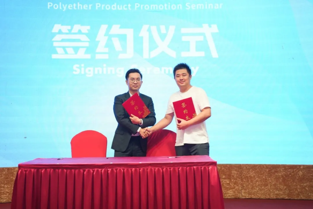 Since the trial production of Dongda’s Quanzhou base, it has gradually won the trust of many customers in East China and South China with its stable product quality, and successfully passed product tests by a number of enterprises. At the event site, Fujian Tianjiao Chemical Materials Co., Ltd. and Dongguan Hengying Sponge Products Co., Ltd., as customer representatives, formally signed cooperation agreements with Dongda Quanzhou.